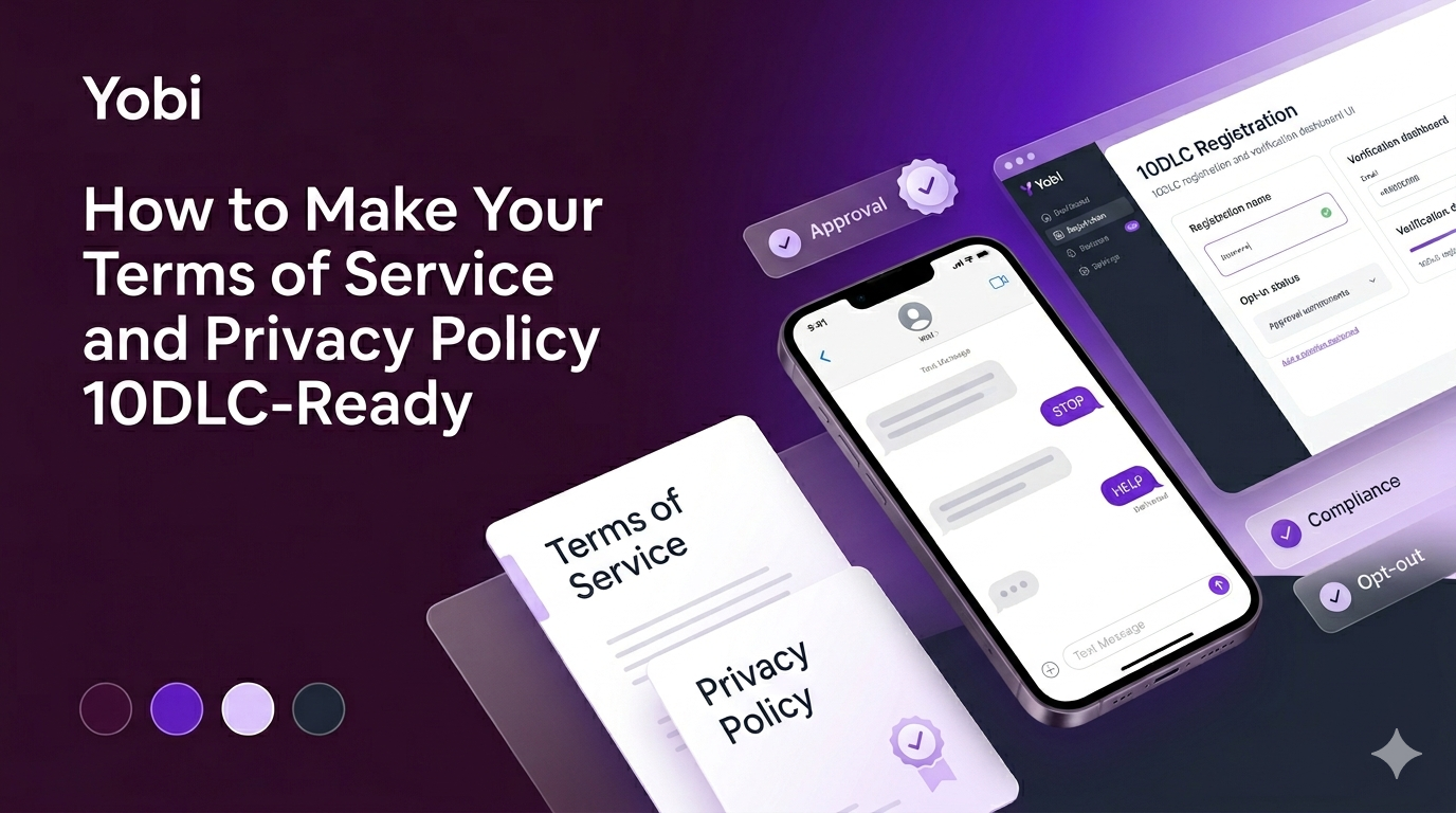 This guide explains what Yobi customers should include in those pages to support 10DLC registration and reduce the risk of message filtering, campaign rejection, or compliance issues.